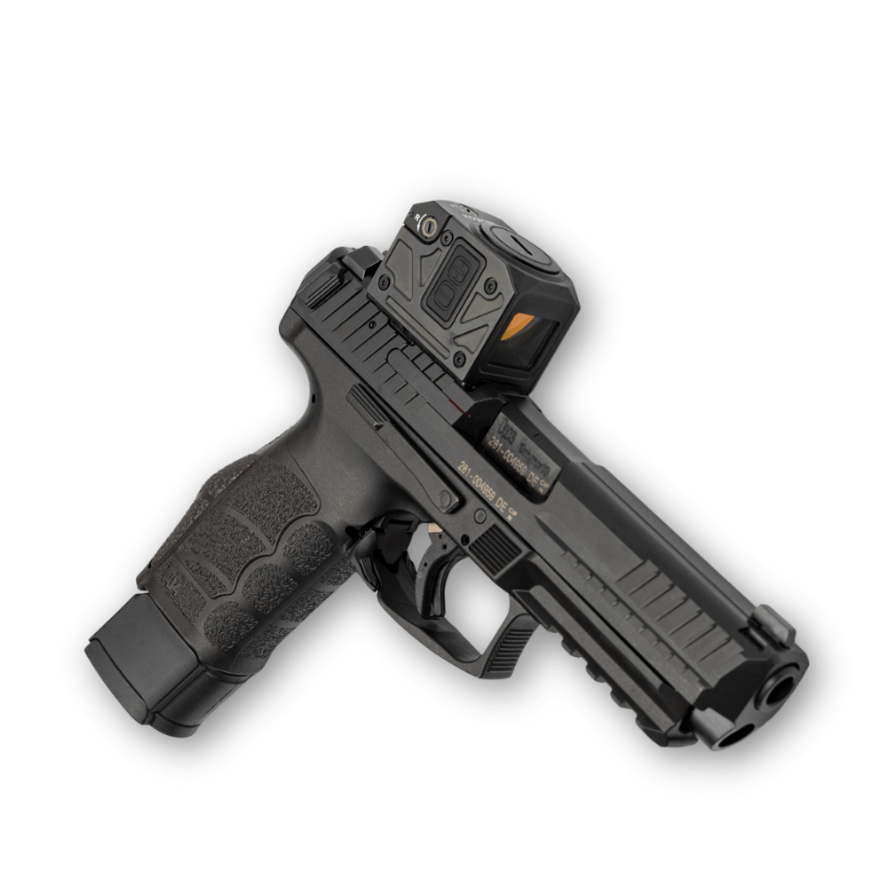 Mediator II enclosed emitter red dot mounted on HK VP9F Angled Left side View